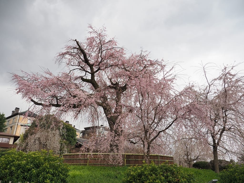 圓山公園是京都最古老的公園,於 1886 年由園藝家小川治兵衛所設計,是京都市民休閒娛樂的好去處。每到櫻花時節,便擠滿了賞花的人潮,不但公園的椅子坐滿,樹下更是鋪滿了佔位子的野餐墊。