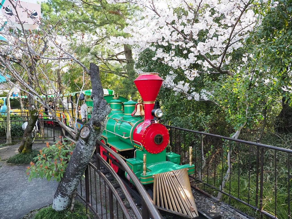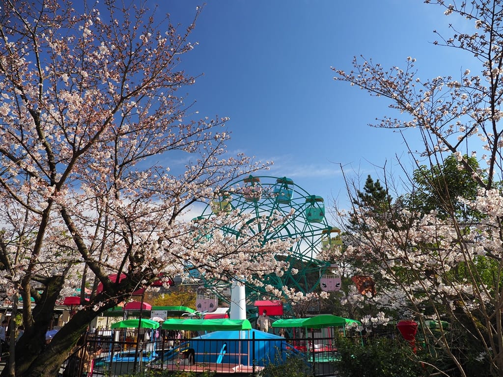 春天造訪動物園,還可以以摩天輪為背景拍櫻花,拍出具有歡樂氣氛的照片。
