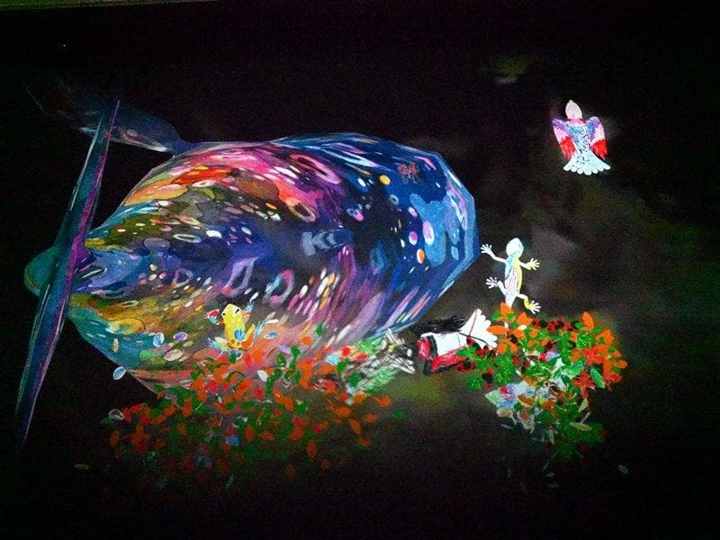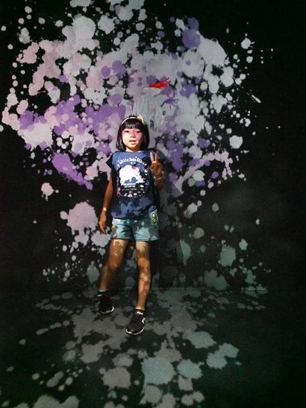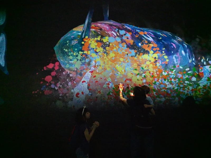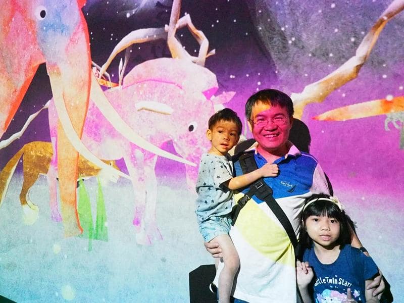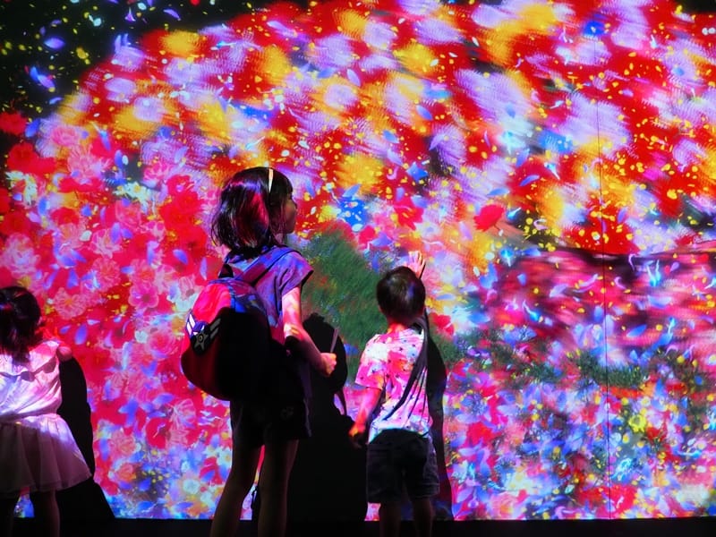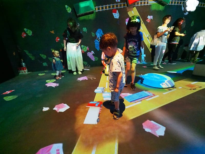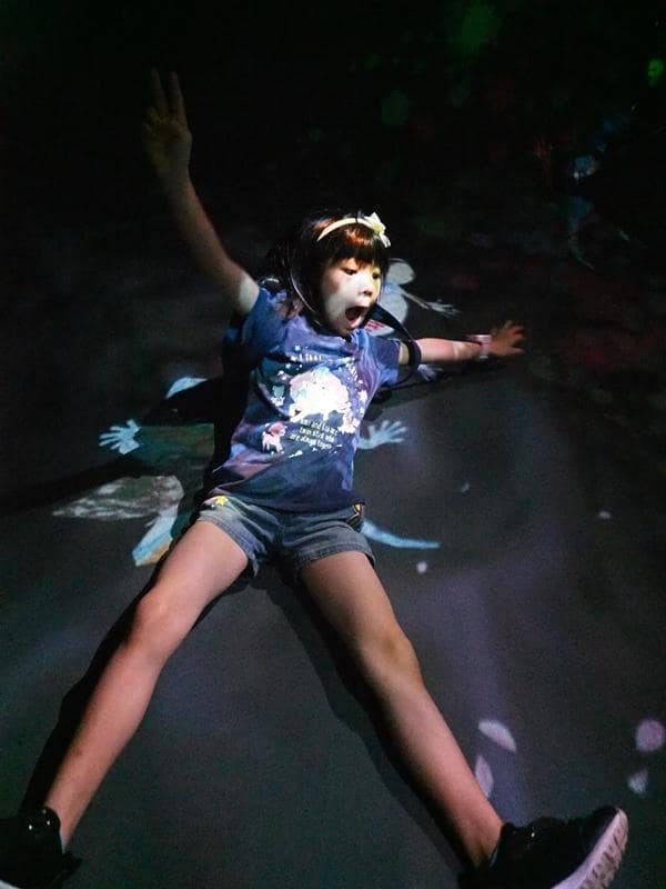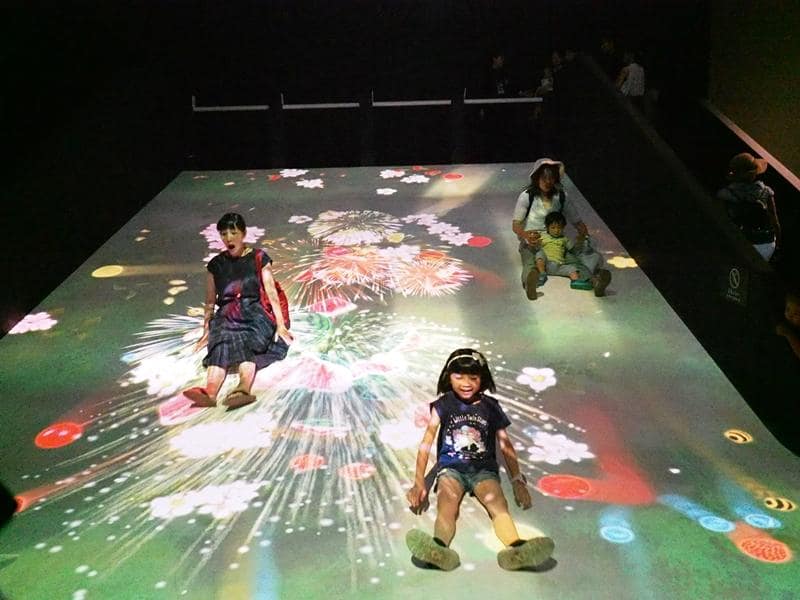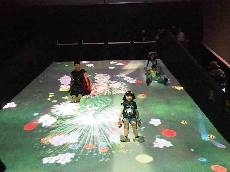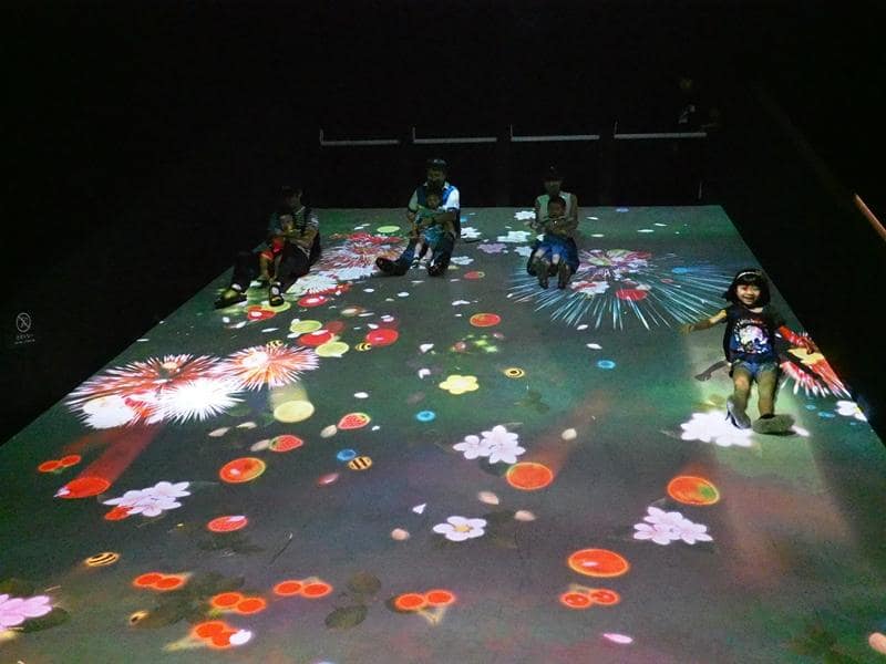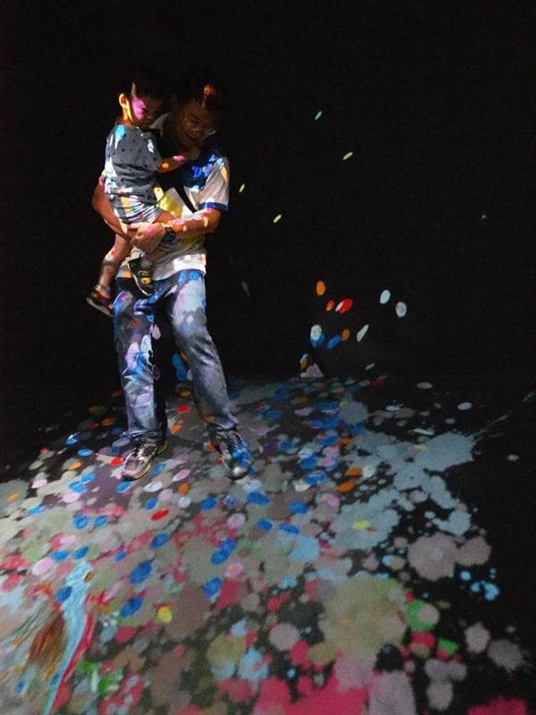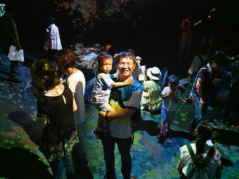 這個展覽叫做TEAMLAB,就是一場數位展覽,利用4D技術,創造出光影互動,讓大人小孩都看得眼花撩亂。