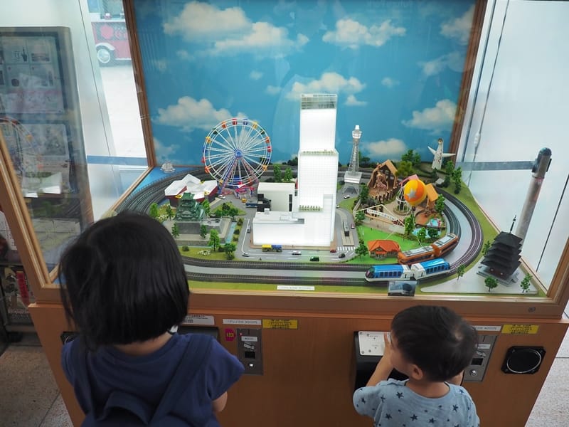 看完展覽之後,在美術館對面有一個火車遙控機台,兩個小孩就在這裡玩一陣子不肯走。