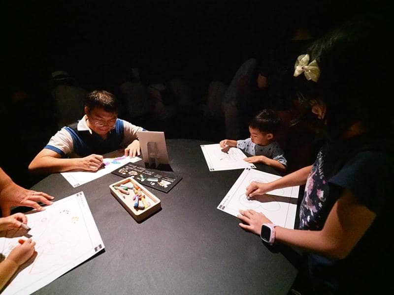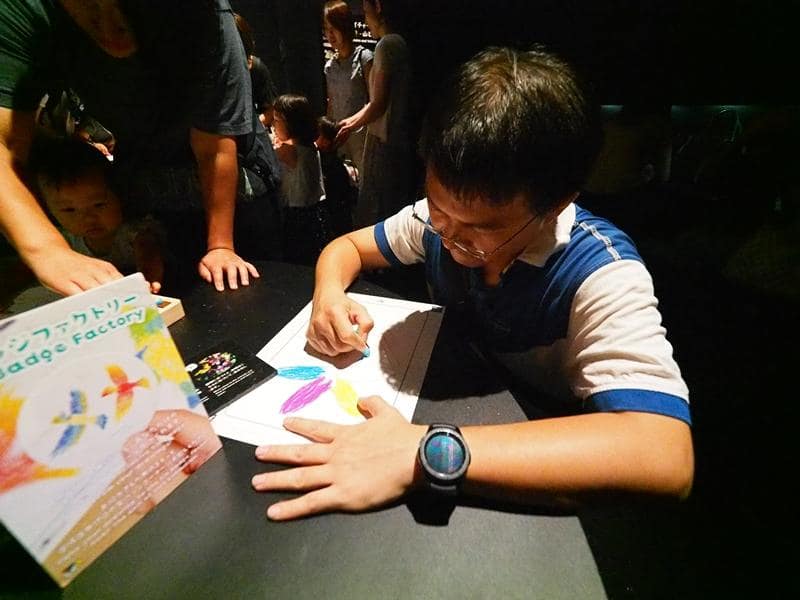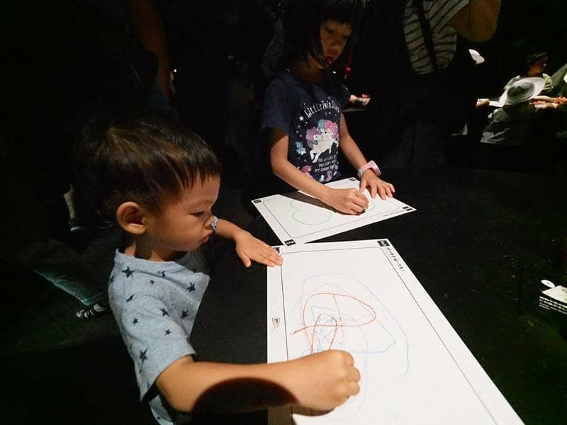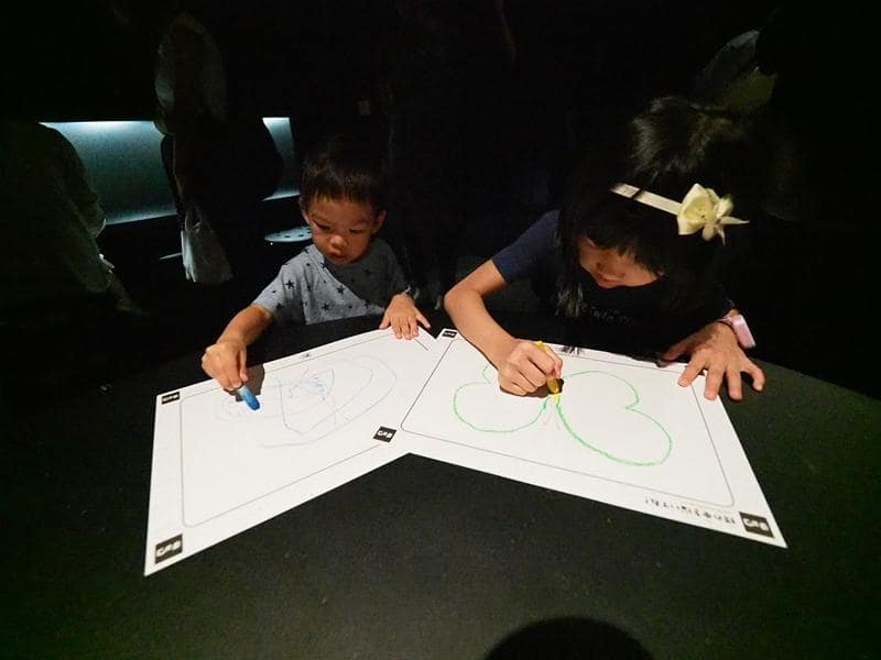 還可以自己塗鴉創作,拿去掃描之後,自己畫的圖案就會投影出來,變成花花世界的一份子,非常新奇有趣。