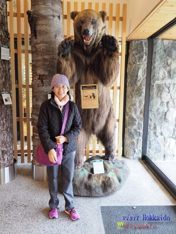 ↓ 後來雨越下越大,便到遊客中心躲雨。遊客中心中居然擺放兩隻熊的標本,這裡開車經常會出現鹿出沒或熊出沒警語。