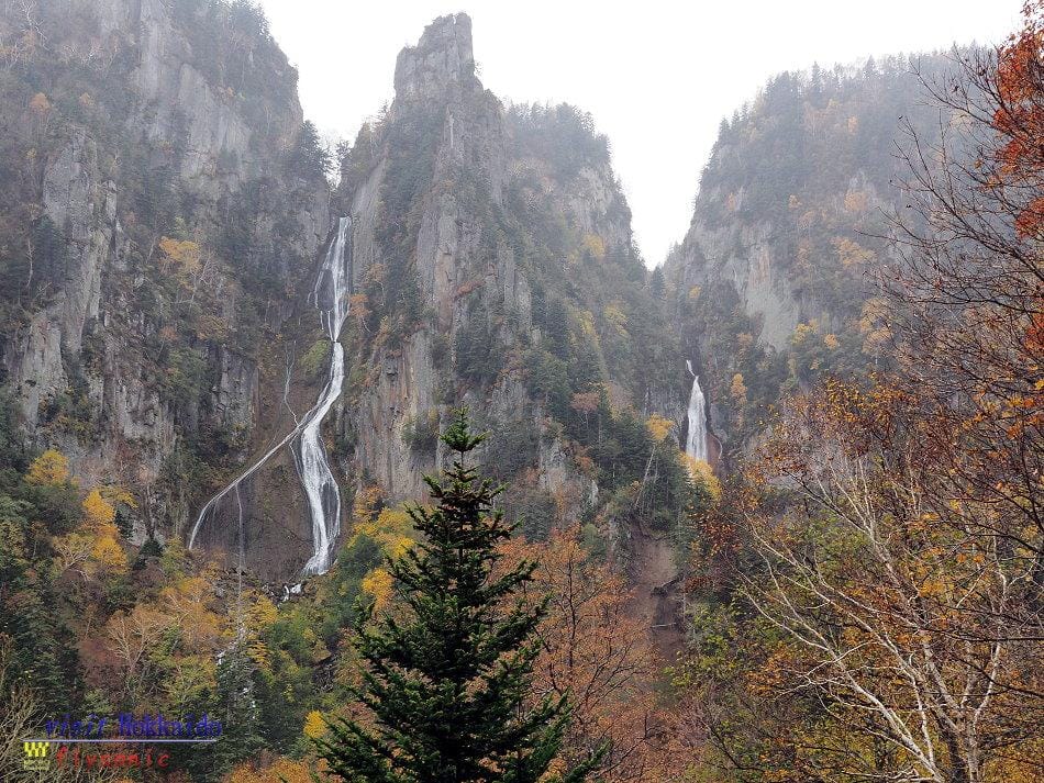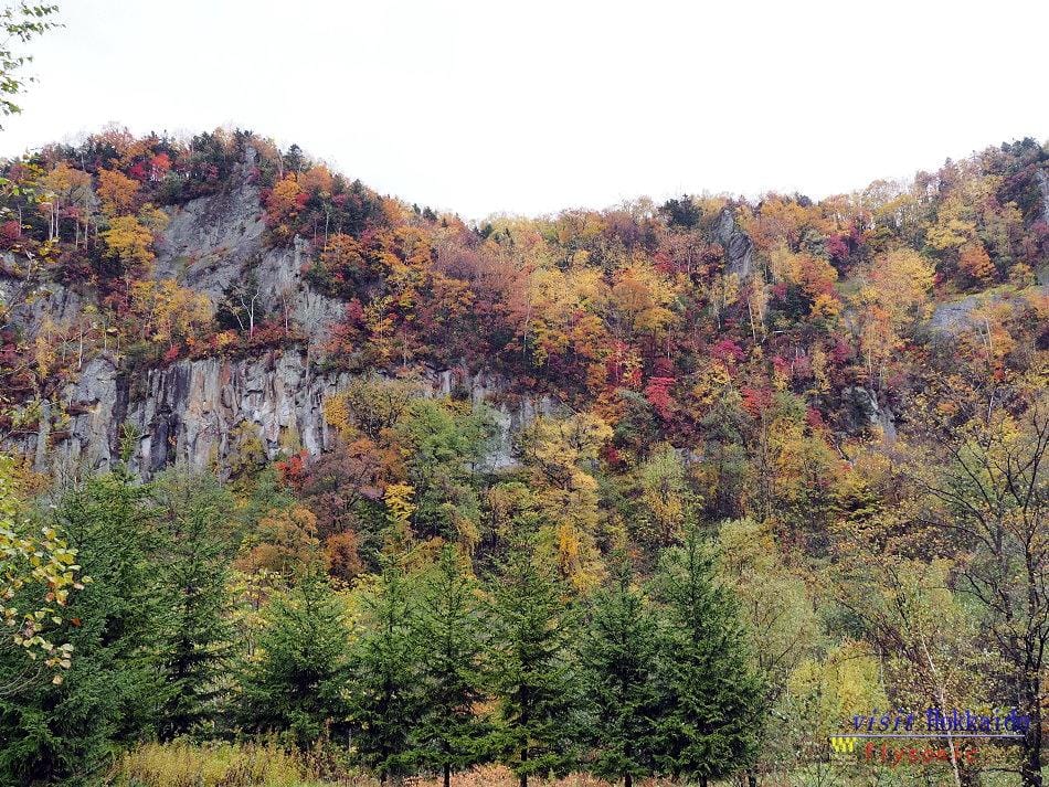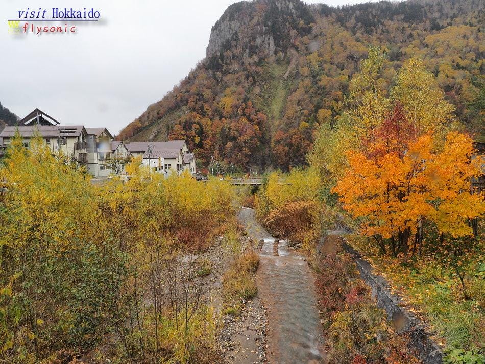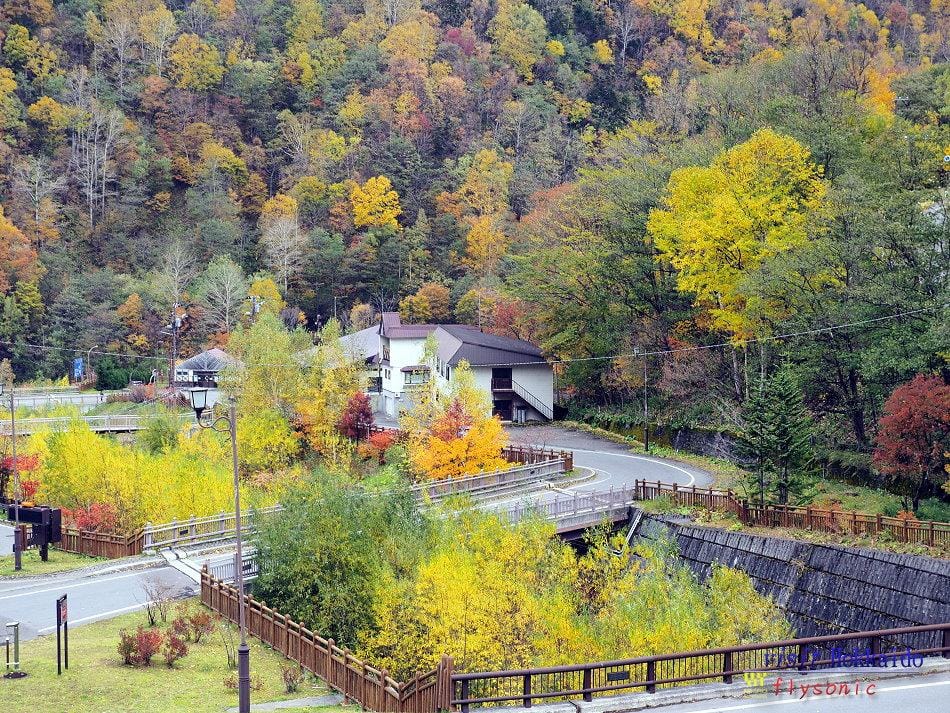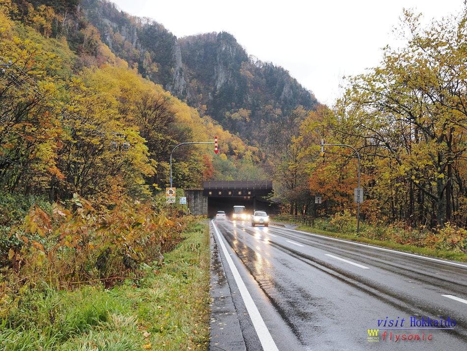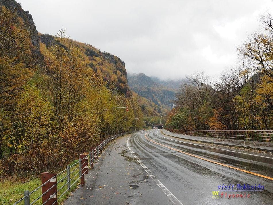 ↓ 層雲峽位於上川町,前往層雲峽途中可以看到公路修築在山壁旁,山壁上的樹葉都轉黃了!