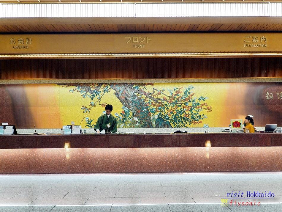 ↓ 飯店報到的櫃臺,服務生全部都是和服穿著,透露出濃濃的日本風。