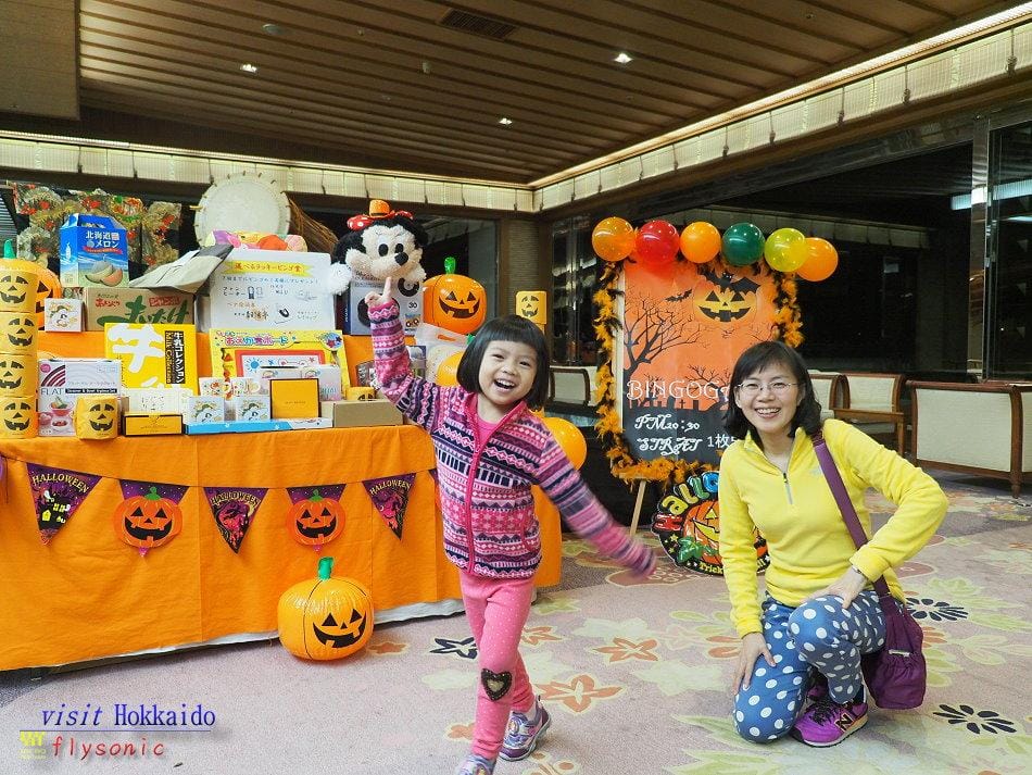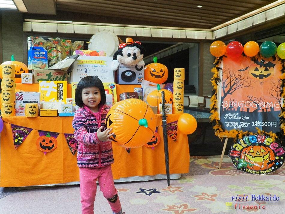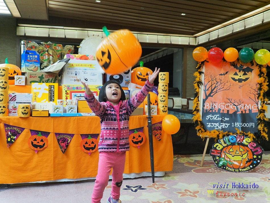 ↓ 用完餐後,便到飯店內逛逛,剛好碰到萬聖節的裝飾品,小寶貝就玩了起來。