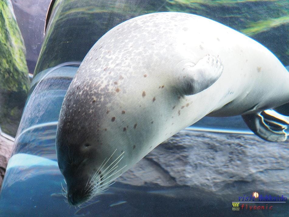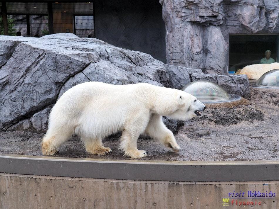 ↓ 隔著玻璃就可以清楚看到北極熊游泳的樣子,這樣的參觀設計方式,真是令人覺得新奇,難怪旭川動物園會成為高人氣的動物園。