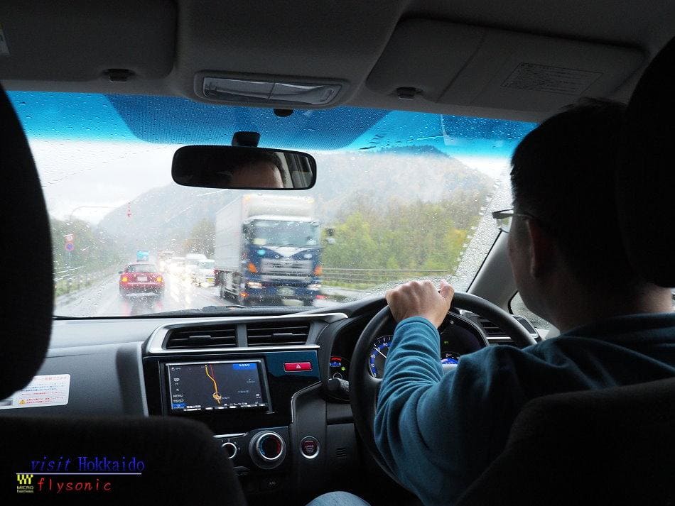 ↓ 看完動物園後,便開車前往層雲峽,從車內可以看得出來雨下得不小。