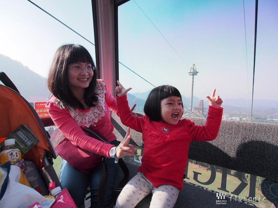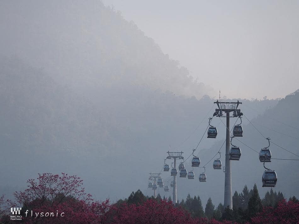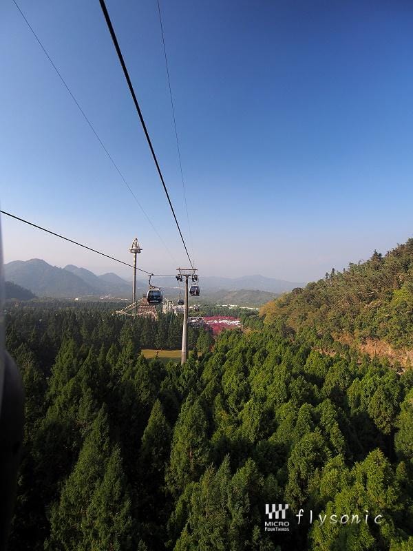 ↙離去九族文化村前,用望遠鏡頭眺望纜車,期待明年有機會全家再來此搭乘纜車及賞櫻。