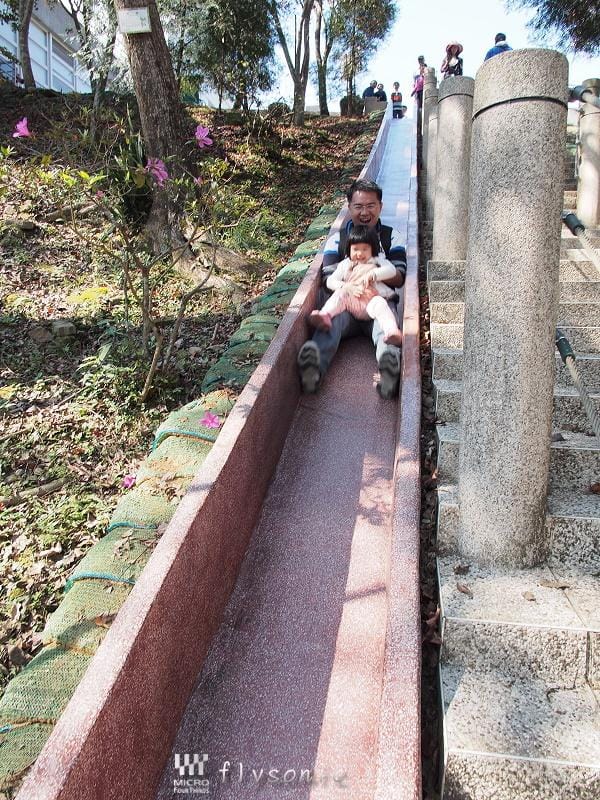 ↓小寶貝也忍不住,一直吵著要玩這溜滑梯,於是便抱著她下去溜,還蠻刺激的!