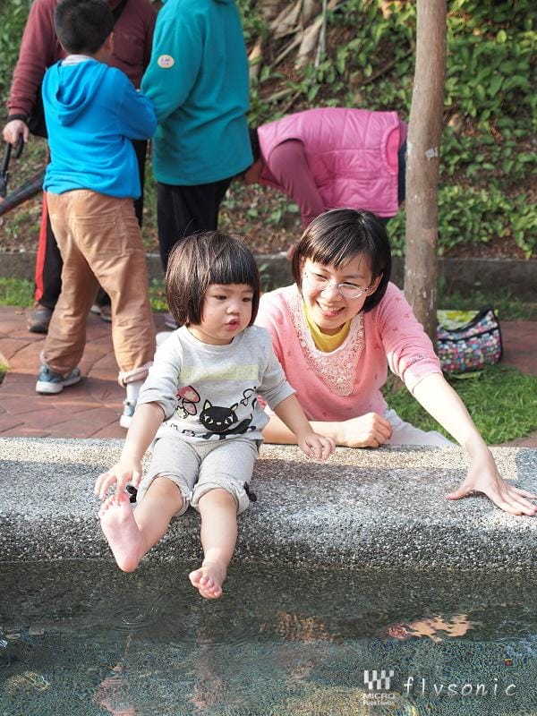 ↓最後來到泡腳的溫泉區,小寶貝吵著要下去泡腳,凹不過她,就讓她下去泡腳,玩水!