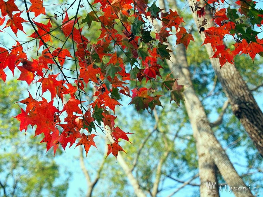 ↓或許來得有太晚,園區內的楓葉大多已經凋零了,僅剩下一些楓葉仍然還是火紅著。