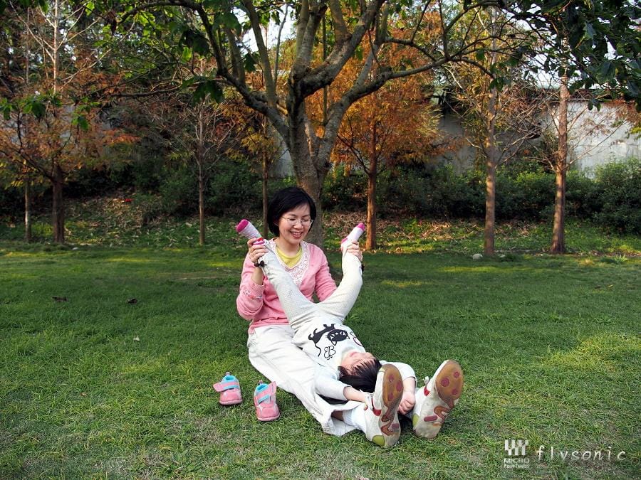 ↓泡完腳,便在樹陰下做個體操吧!