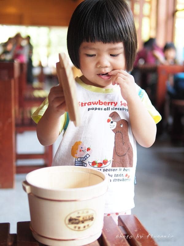 ↓中午到木茶房享用中餐,其實這裡的餐點普通,最主要是衝著這個木桶而來,一客木桶飯要價300多元。小寶貝很喜歡這個木桶,已經把它當成她的玩具。