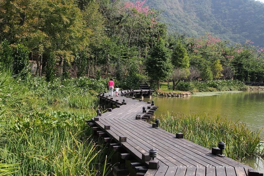 ↓由於是非假日來,遊客少,才能輕鬆推著推車在這池畔散步。