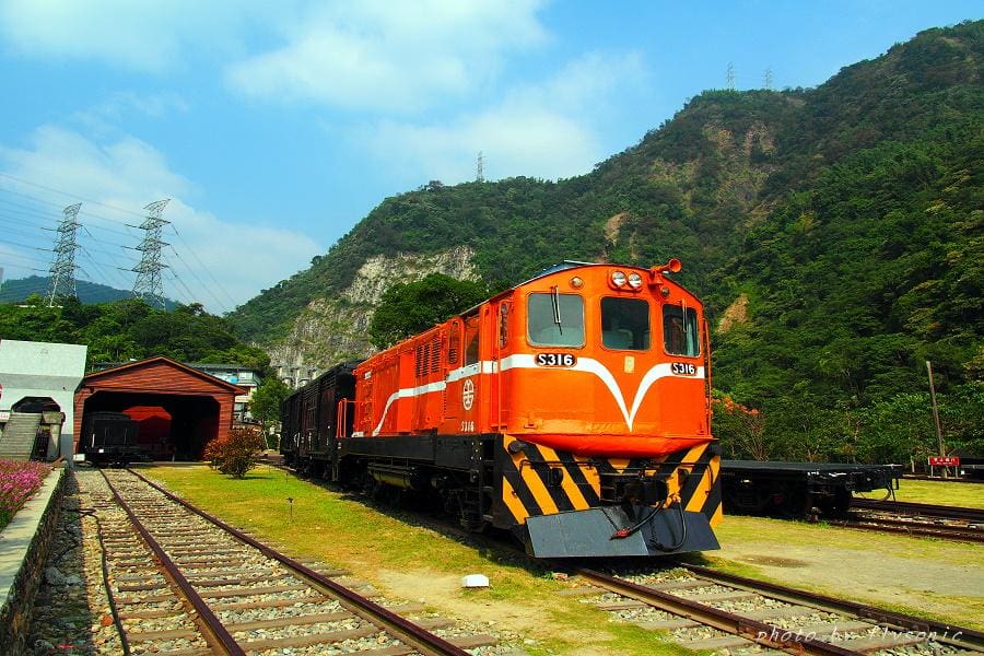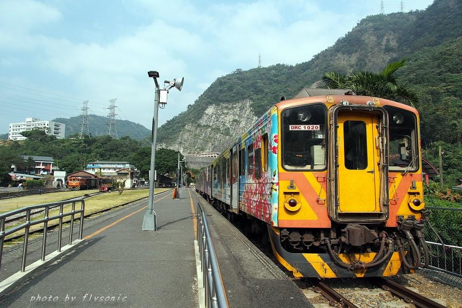 ↓看完木頭工廠後,便到鐵道區逛一逛,剛好一輛列車進站,準備開往台中。