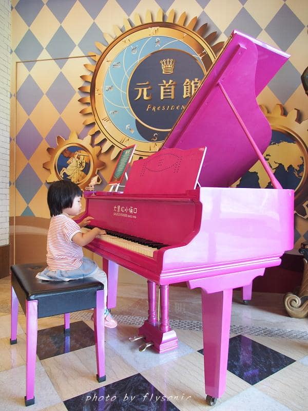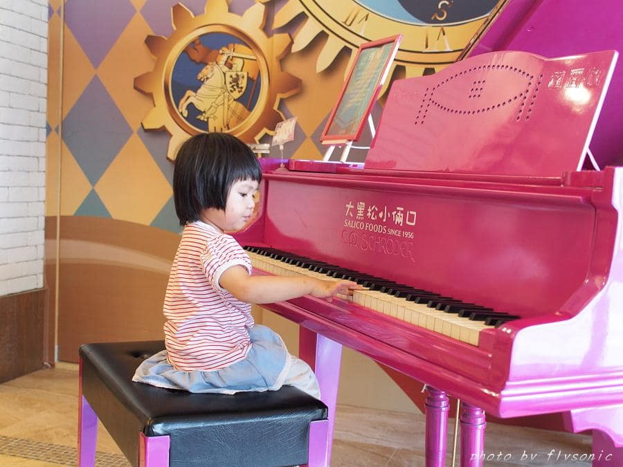 ↓館內有鋼琴,小寶貝一到,居然馬上爬上去彈起來,而且彈的很起勁。後來才發現,原來是禁止碰觸的。