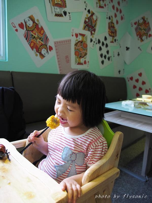 ↓吃飽之後,小模特兒又動來動去,不聽我的指揮,始終不願意在這兩張撲克牌下面擺個pose給我照。